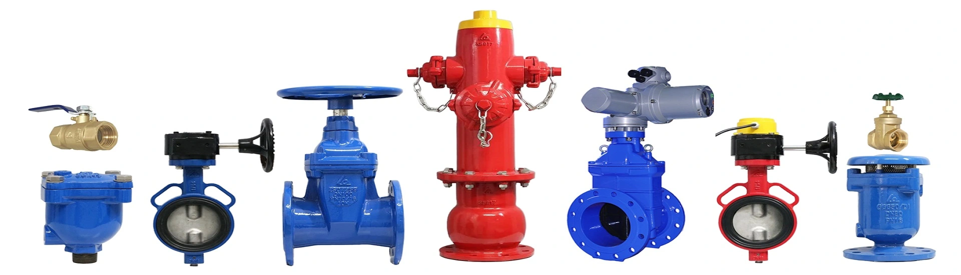 | Vật liệu chế tạo | SUS304/316, gang cầu GGG50, đồng thau C3771, uPVC/PPH | Gang cầu GGG40, đồng thau | Gang cầu GGG40 | Đồng, gang xám |