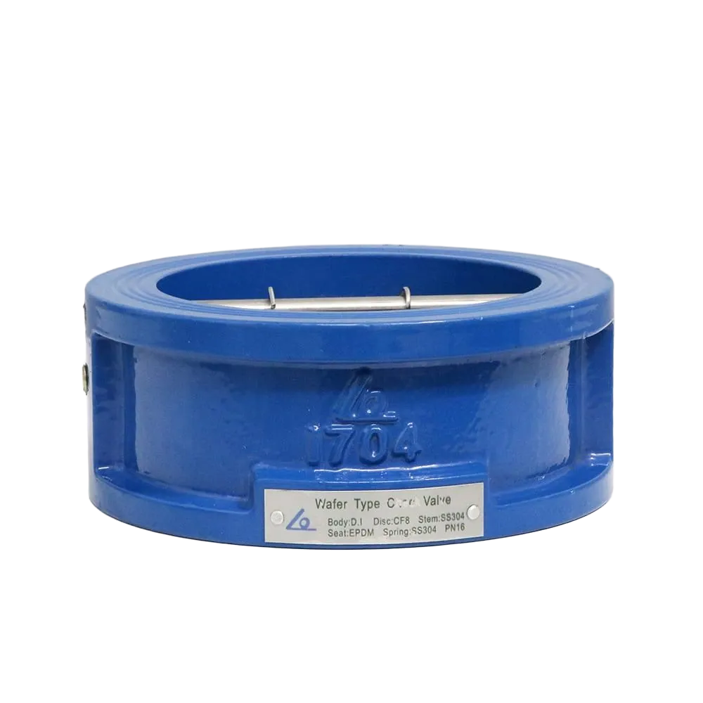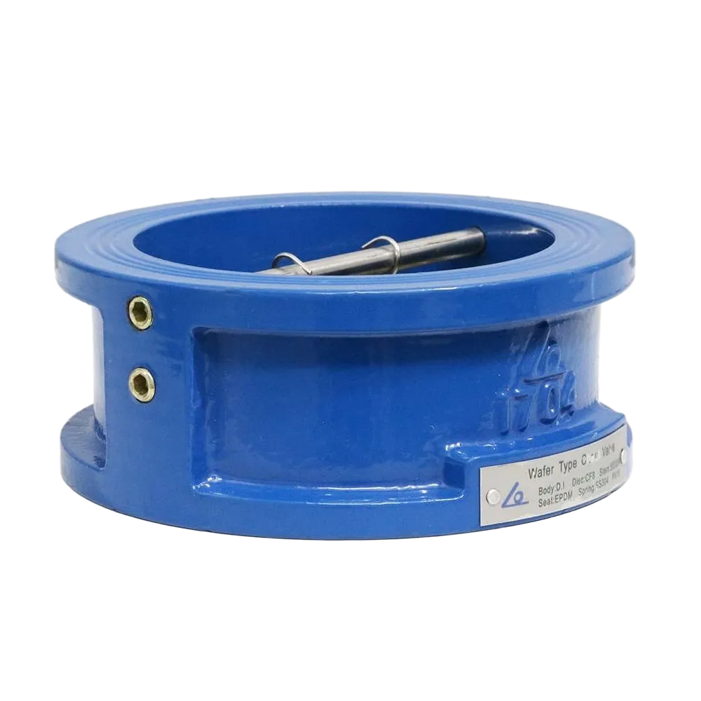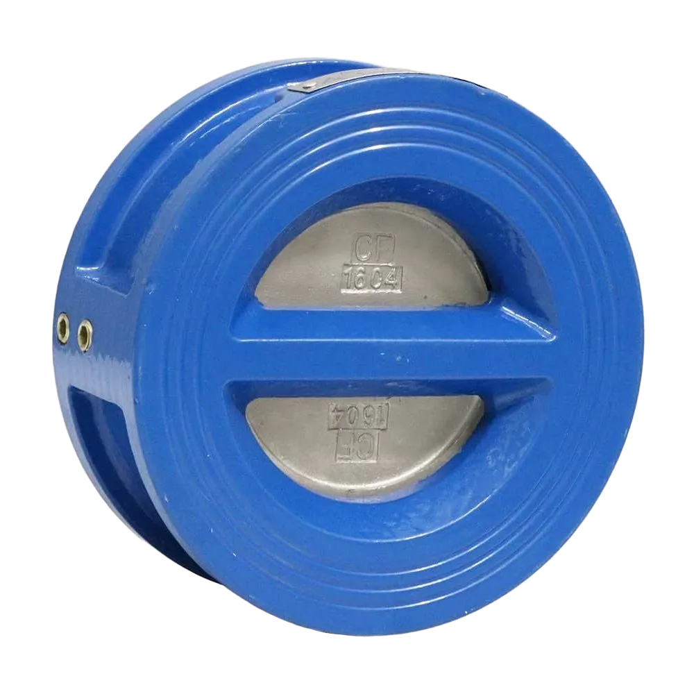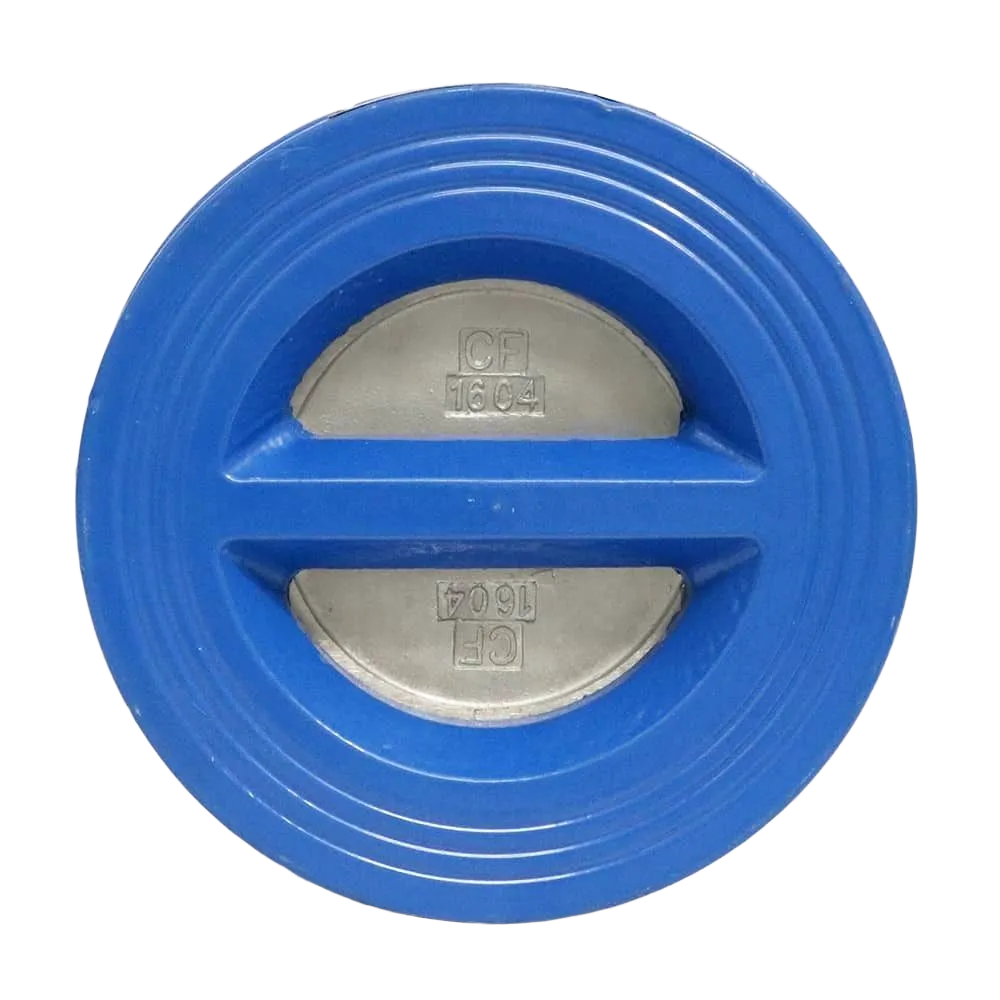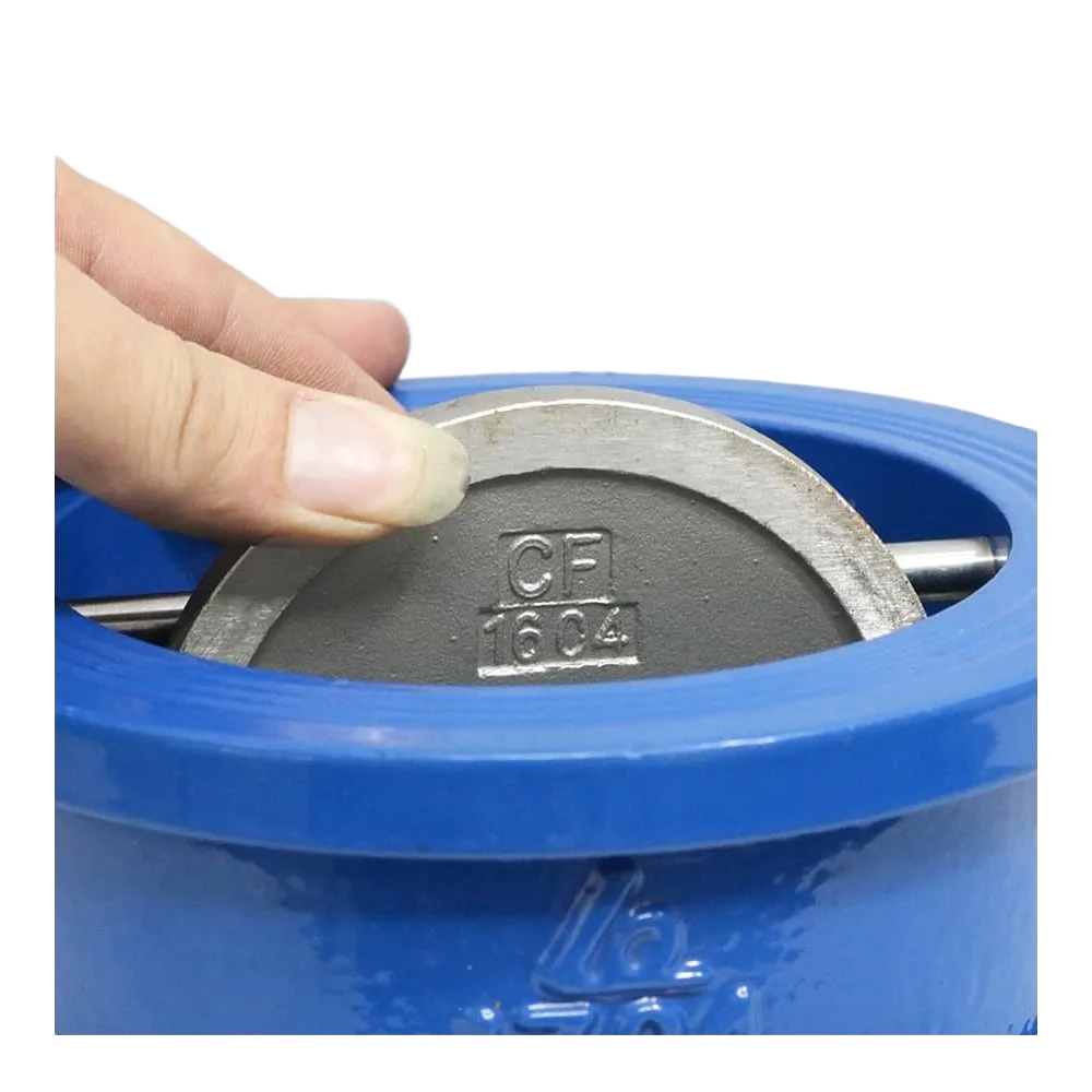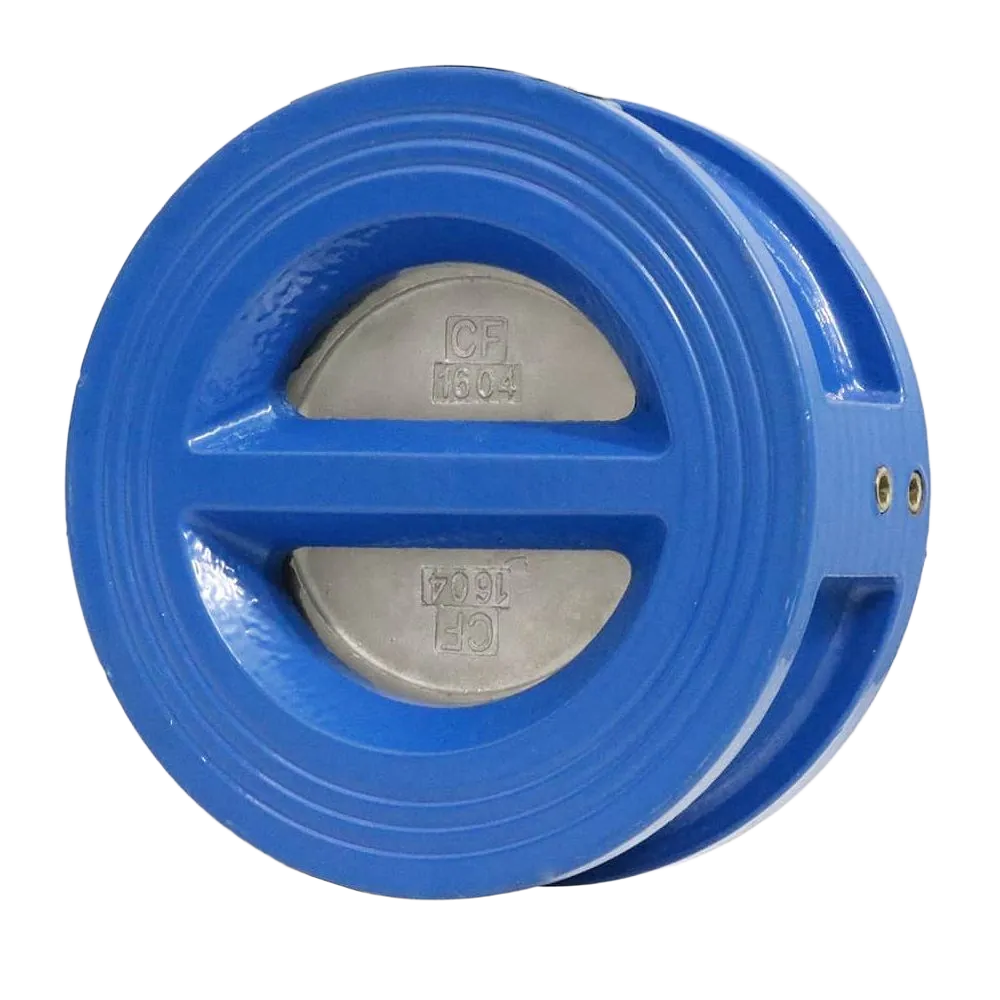 Hai cánh inox nhẹ, có lò xo hồi trung tâm → đóng tức thời khi dòng ngược, ngăn sập ống và búa nước.