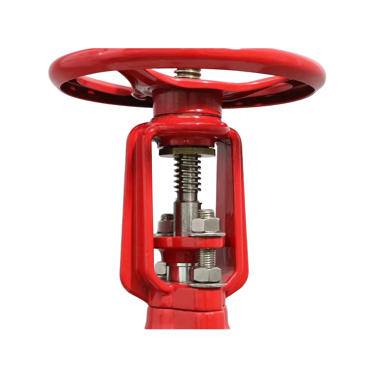 Màu sơn đỏ PCCC đặc trưng, thân van thẳng, ty mạ sáng – mang lại hình ảnh chuyên nghiệp cho hệ thống kỹ thuật hiện đại.